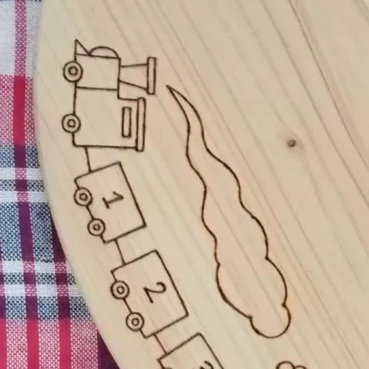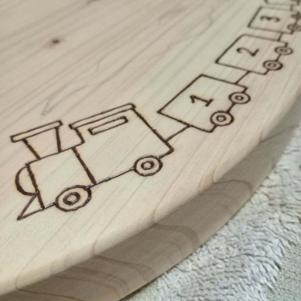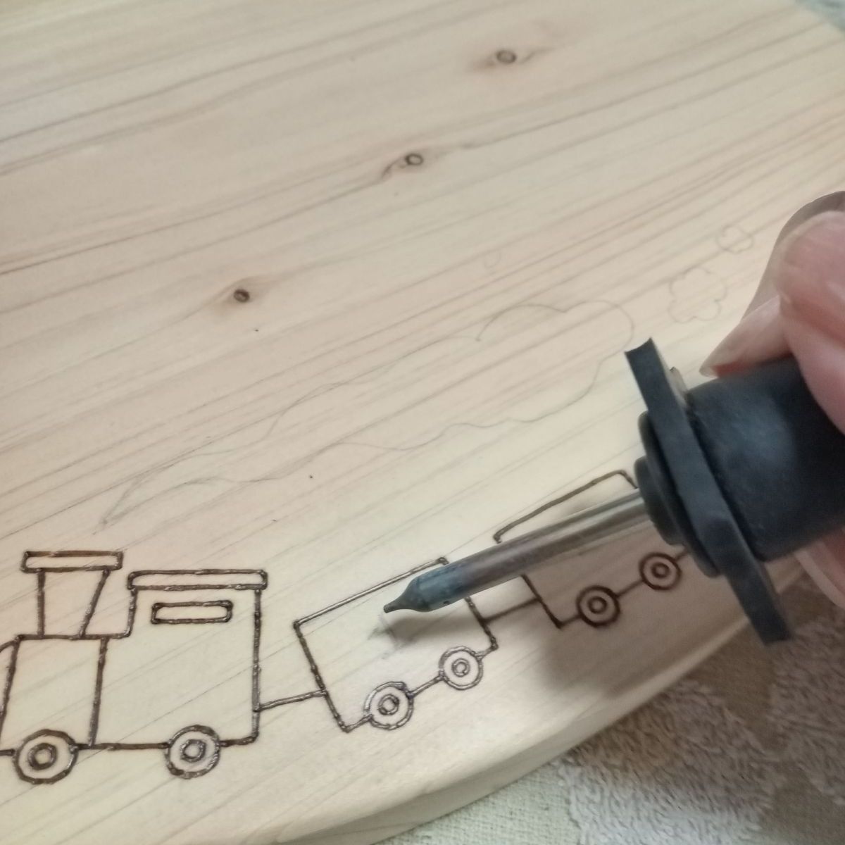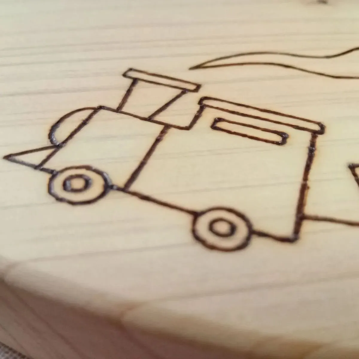 ウッドバーニングで汽車ポッポ描いてみました😄