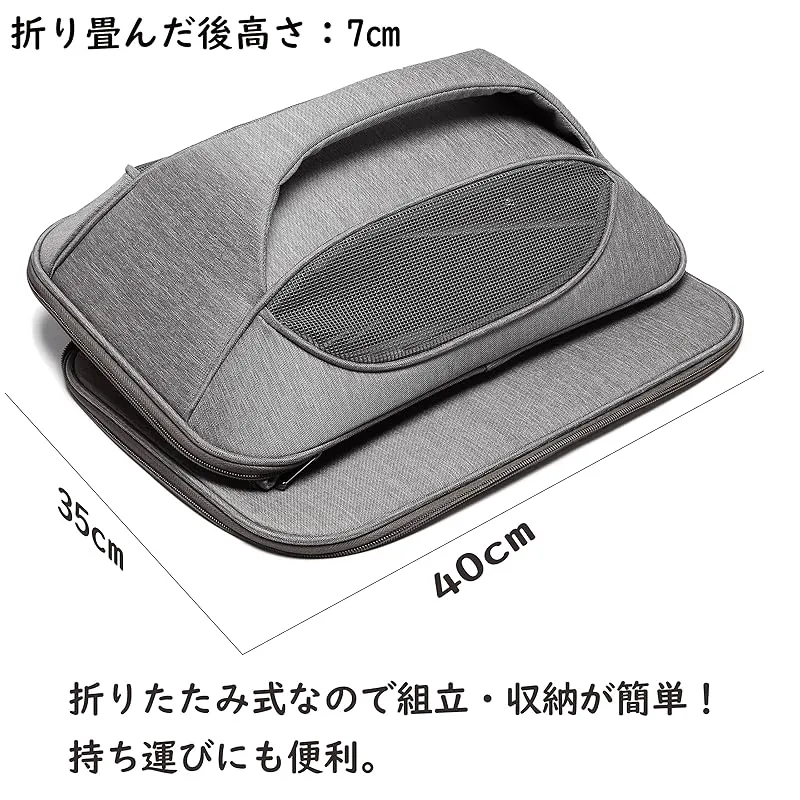 「商品仕様」素材: 亜麻カチオン 重量:1.3 サイズ:42*30*32(ドームの天井までの高さ) 折り畳んだ後サイズ:35*40*7 カラー:グレー 付属品:両面使用できる中敷き、取り外し可能なショルダーベルト 対象:猫、小型犬、重さ約8まで 適応種:トイプードル・チワワ・猫等