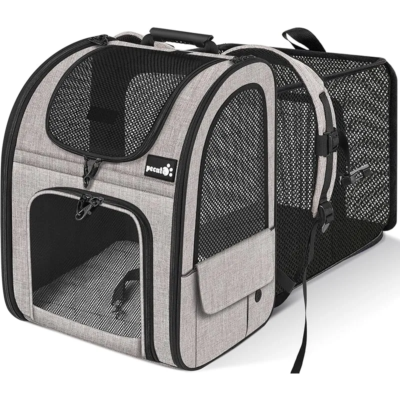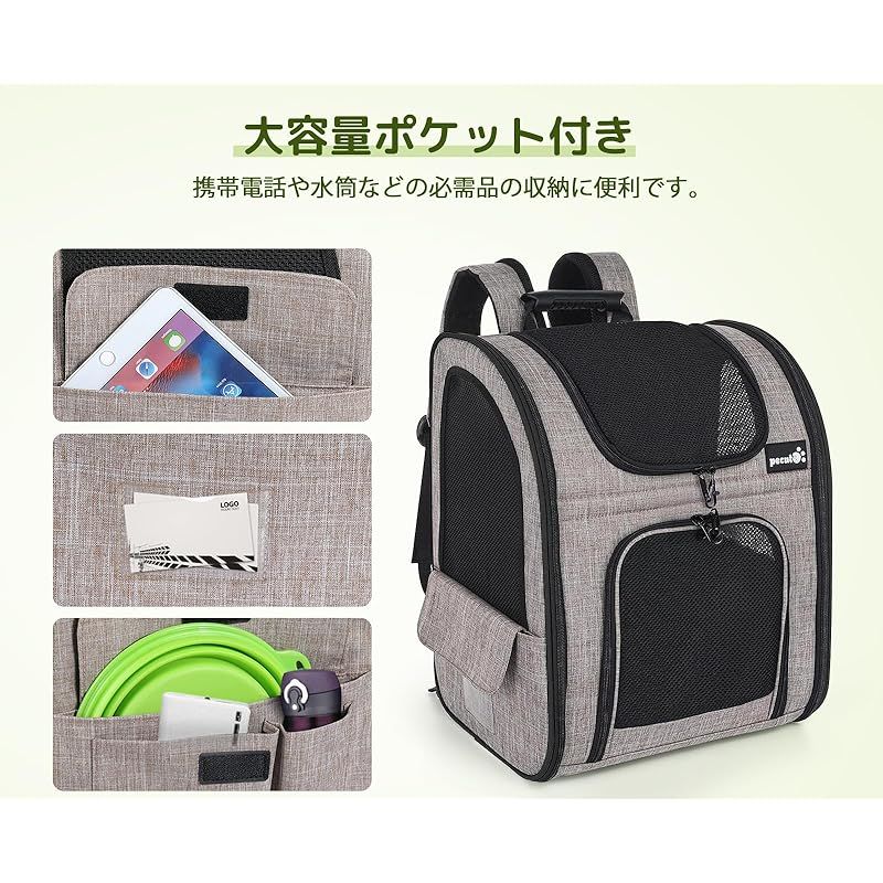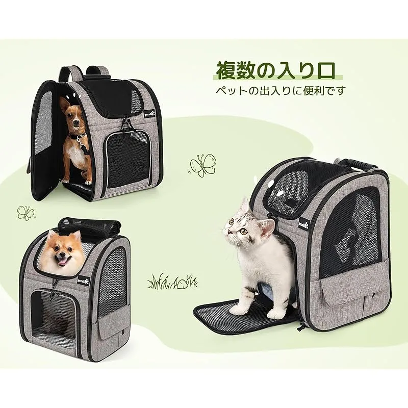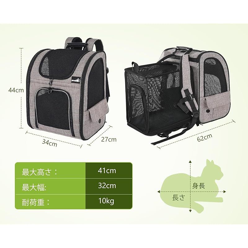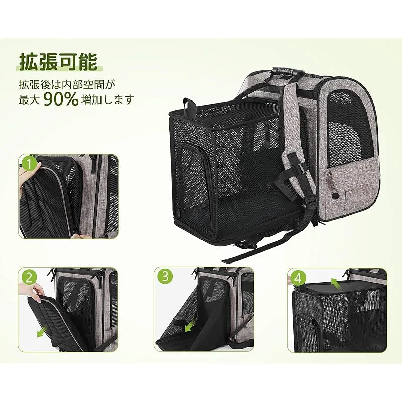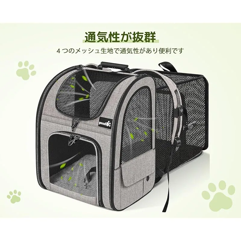 商品名:ペキュート Pecute ペット キャリーバッグ 猫用 犬用 リュック メッシュ窓 通気性 拡張可能 2WAY ペットハウス ケージ 折り畳み お出かけ ドライブ 旅行 通院 防災 避難用 キャリー カーキ