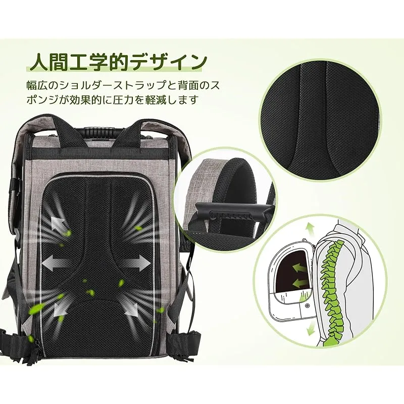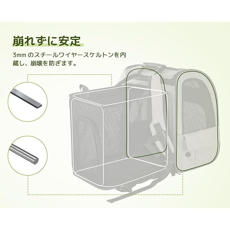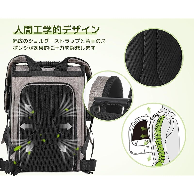【優れた安全性】??安定性が良いデザインで安心してお出かけできます!2重のチェストベルト、歩行時にバッグの揺れを抑えて、肩や背中の負担も軽減してくれます。??飛び出し防止リード・ロック式ファスナー付、少しヤンチャなペットも安心です。*新しく届いたバッグのファスナーは、前後に引っ張ることでスムーズに動くかどうかが試せます。