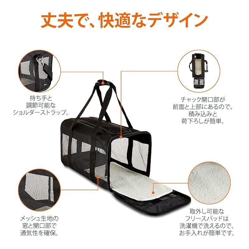 商品名:ベーシック ソフトキャリーバッグ 犬 ・猫用 10kgまで Lサイズ ブラック 50 cm x 30.4 cm x 30.4 cm