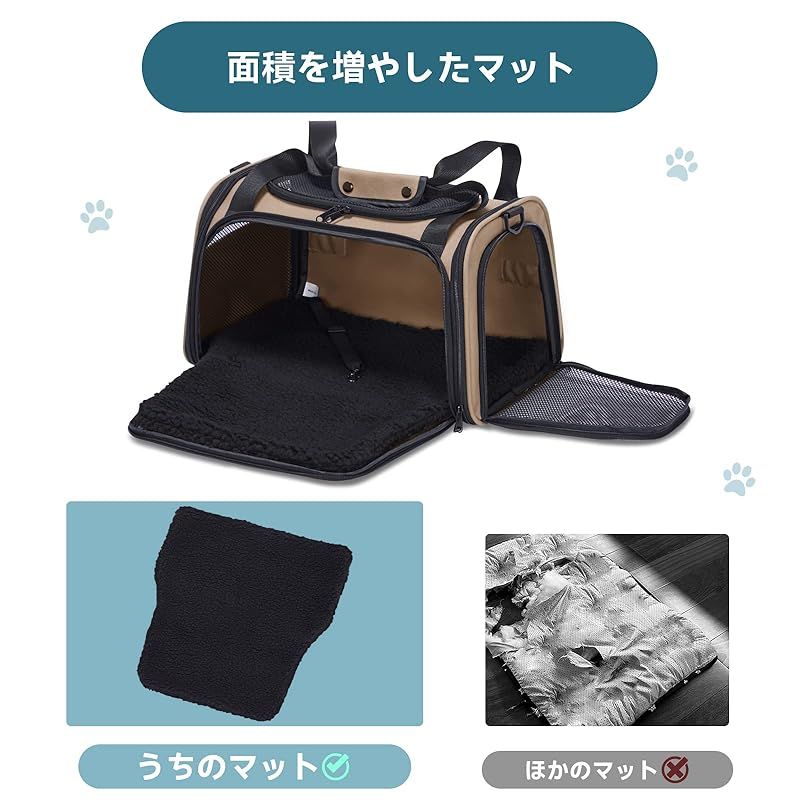 【ペットに快適な空間を提供】マットの面積が広いので、フロントドアを開けてマットを広げた後、ペットベッドとして使用することができます。プラスチック製のタイプと異なり、ジッパーと布なので待合室で待っているときに手を入れ愛猫を撫でられるます。車に載せ、飼い主を見ることができので、ペットは安心するのか鳴かずに居てくれます。