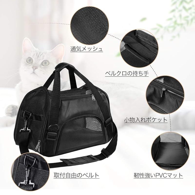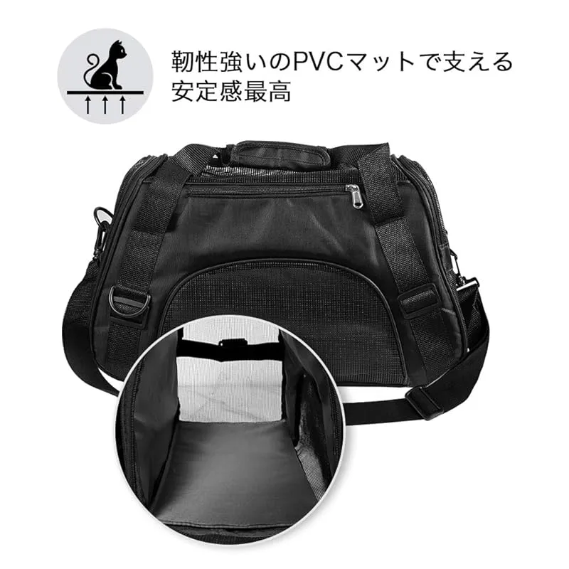 商品名:RHINOCATS キャリー バッグ ペットキャリー ショルダー 手提げ 猫・小型犬用 5kg耐荷重 3way キャリー バッグ お洒落 通気性 折りたたみ おでかけ 旅行 通院 防災 Sサイズ 黒