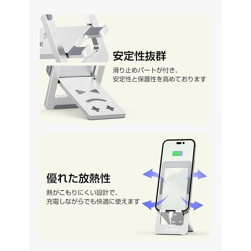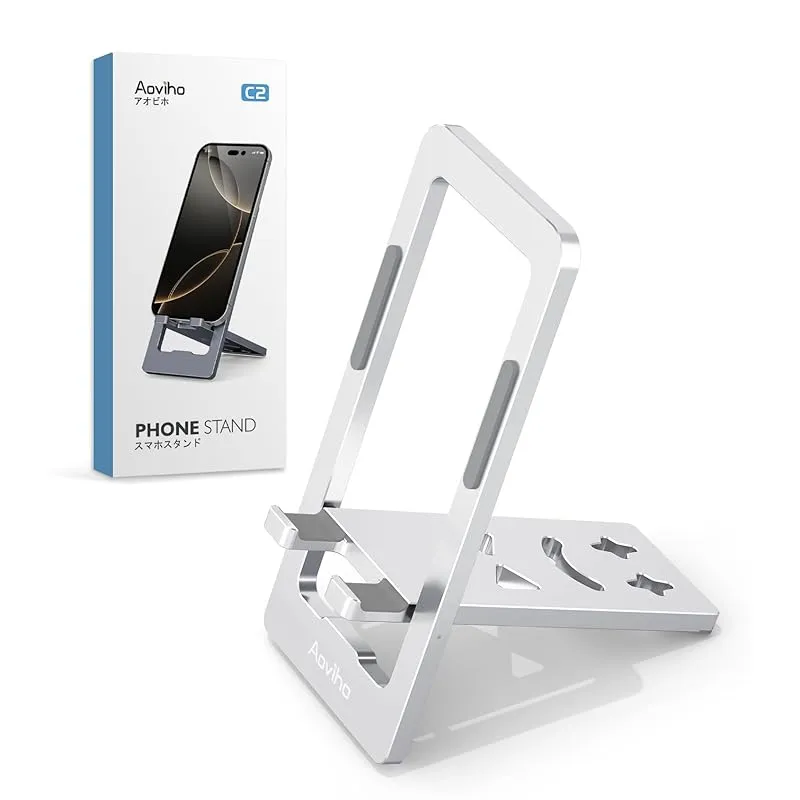 商品名:Aoviho(アオビホ) スマホスタンド 携帯スタンド卓上 薄型 スマホ立て 折り畳み iphoneホルダー phone stand 横縦置き台 アルミ合金製 角度調整 持ち運び便利 かわいい iPhone17 Air 16e 16 15 14Plus Pro