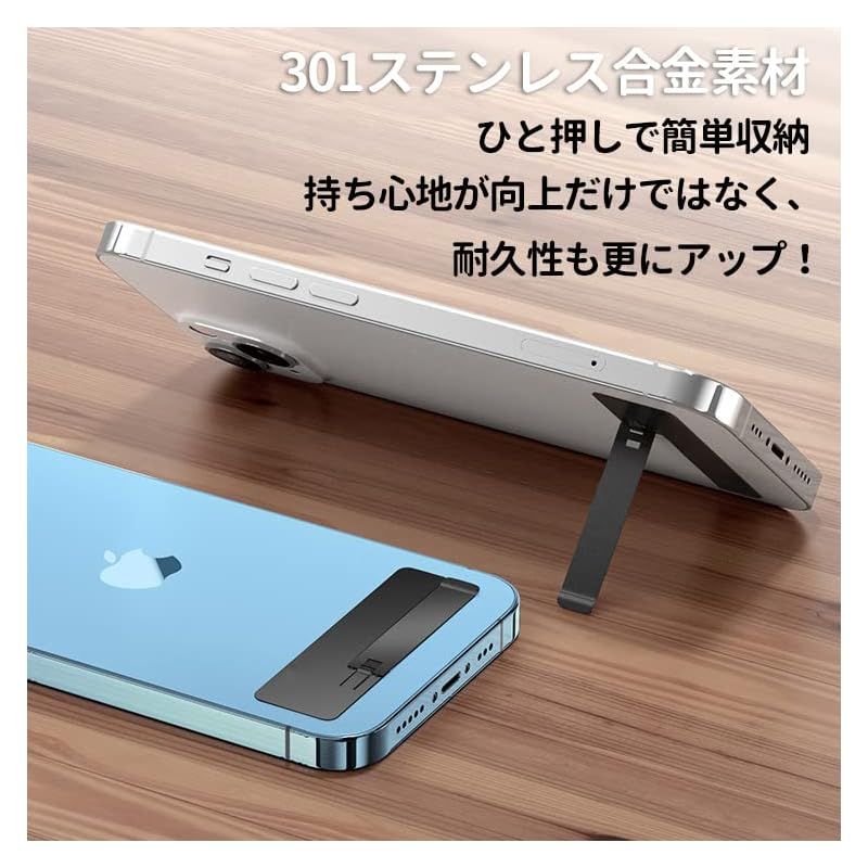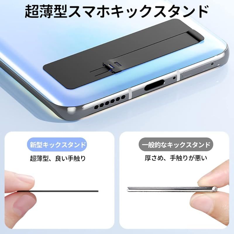 AOOMO スマホ メタル キックスタン 超薄型 驚きの薄さ 0.6mm ステルス スタンド 金属 製 貼り付け 縦置き 横置き 対応 iPhone/iPad/Android 多機種対応