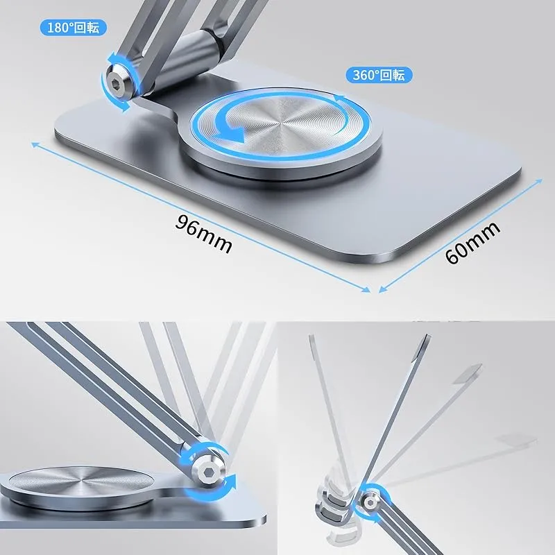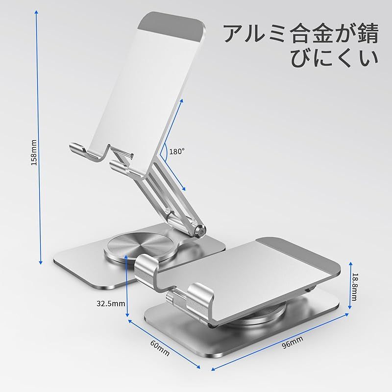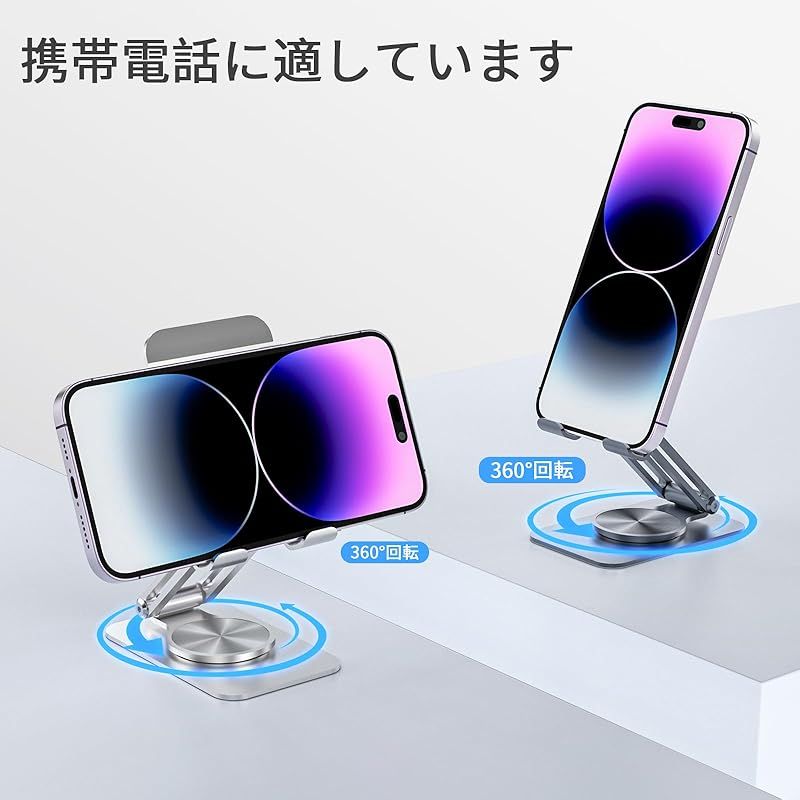 スマホスタンド 携帯スタンド 卓上アルミニウム合金製 無段階360度回転調整 スタンド折りたたみ式 iPhone 16 15 14 plus promax 13 mini プロ マックス se Huawei android に対応