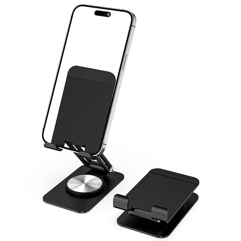 折りたたみ高さ調節可能なスマホスタンド伸縮式スマホ スタンド 卓上 アルミ合金製無段階360度回転調整 iphoneスタンド 折りたたみ式 iPhoneシリーズ、/Androidスマホ対応 2024軽量化されたアルミ製携帯電話スタンド