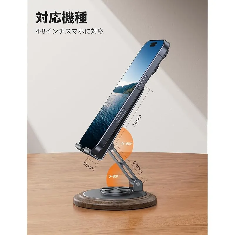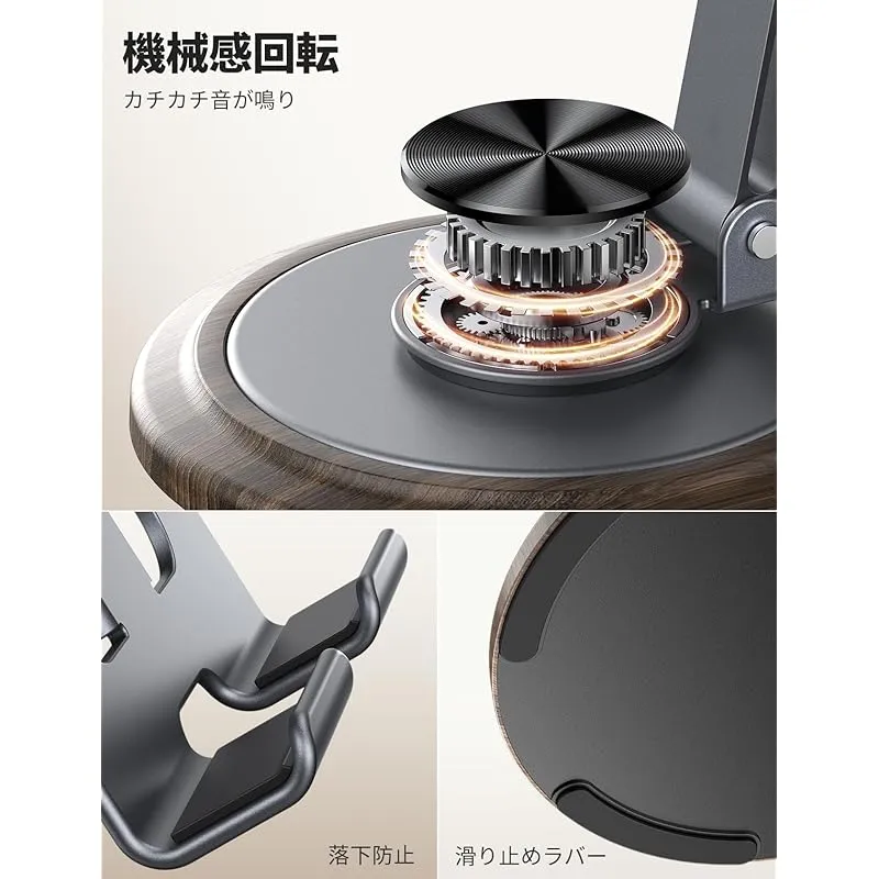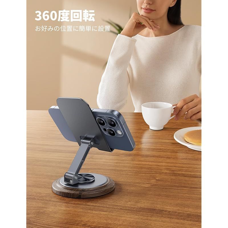 【360度回転・カチカチ回転音】 アルミ 折り畳み スマホスタンド Lamicall : 回転 卓上 コンパクト 角度 折りたたみ 携帯 置き 軽量 アイホン 立て すまほ 台 スマホ 机 つくえ デスク 縦 横 滑り止め アイフォン スマフォ アンドロイド iPhone 17 Air 16e 16 15 14 plus pro promax 13 mini iPhone 12 mini Pro Max 11pro 11 XS XR X 8 plus 7 7plus 6s 6 6plus 5 5s se3 第三世代, Xperia 1 5 XZ2 XZ3 X Z4 Z5,Galaxy S24 S25 Ultra,Note 7 8 9 10+ 20,Z Fold 4 5 6,S5 edge S6 edge S7 edge,A8S A9S A70,W25 W26 Flip,huawei Mate Nova P70 Pro,Xiaomi android プロ マックス プラス ミニ に対応 灰 グレー 木目