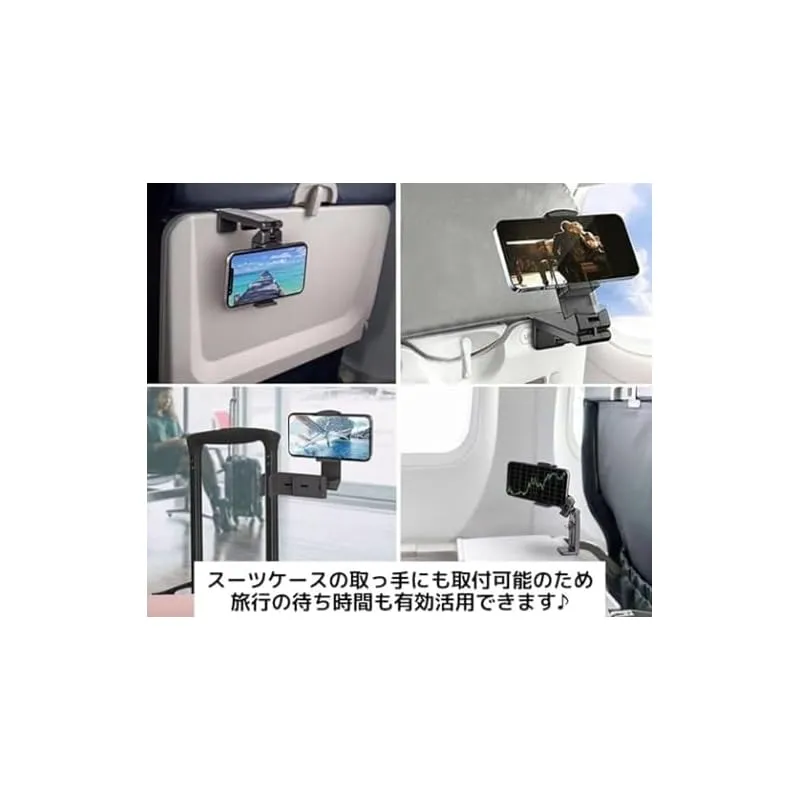 安定感抜群 スマホホルダー ポータブルスタンド スマホ置き 車載 新幹線 飛行機 旅行 出張 スーツケース取っ手にも装着できます。