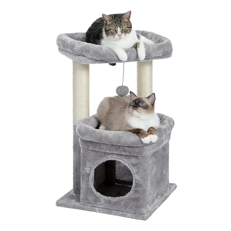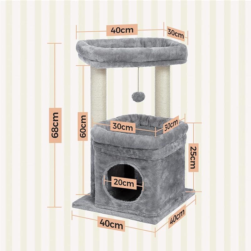 PAWZ Road キャットタワー ミニ 猫タワー 小型 低い 小さめ 据え置き 人気 爪とぎポール 爪研ぎ 麻紐 猫のおもちゃ コンパクト 省スペース 頑丈 安全 猫ハウス 展望台 - 68cm グレー