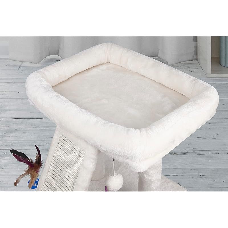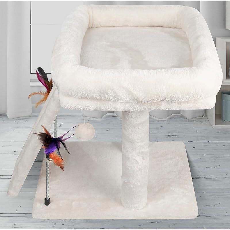 商品名:TINWEI キャットタワー 猫タワー 麻紐 安定 コンパクト 爪とぎ 省スペース 据え置き おもちゃつき 44CM高さ (ベージュ)