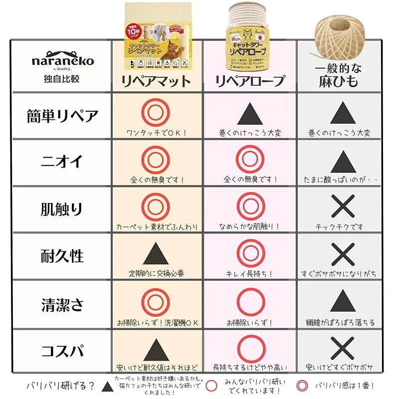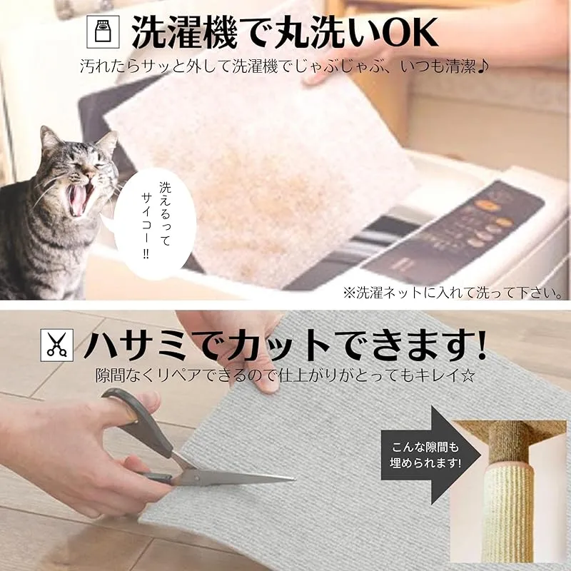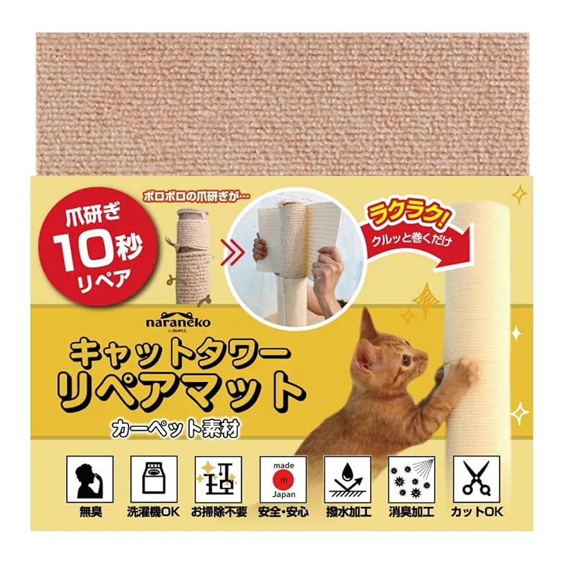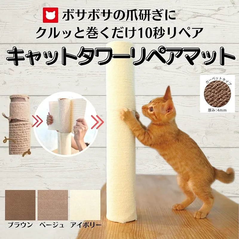 【ボサボサ爪とぎ10秒リペア】クルッと巻くだけキャットタワーリペアマット 日本製 無臭 消臭・撥水加工 ハサミで切れる お掃除不要 洗濯機OK 爪研ぎ 補修 修理 (30cm×30cm, ベージュ)