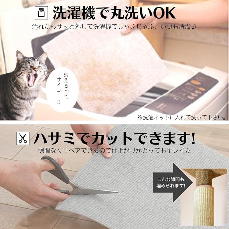 【繊維が落ちないからお掃除不要&洗濯機で丸洗いOK】麻ひもからポロポロと落ちる繊維のお掃除って何気に大変ですよね!?リペアマットならお掃除不要!さらに洗濯機でジャブジャブ洗えるので衛生面も良いですね。 ??