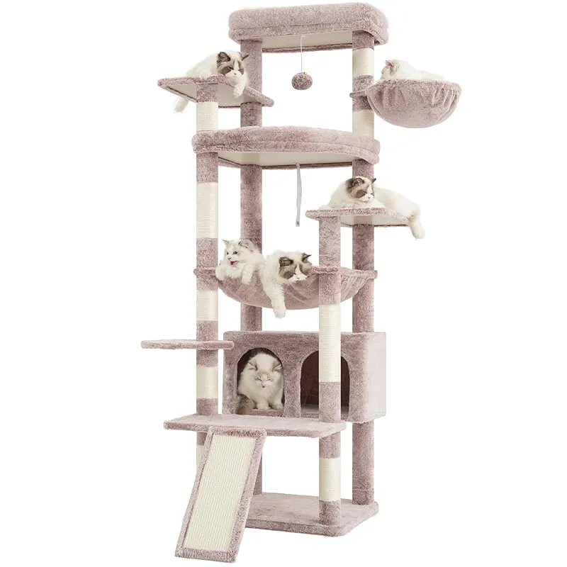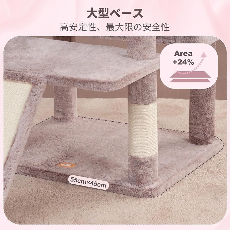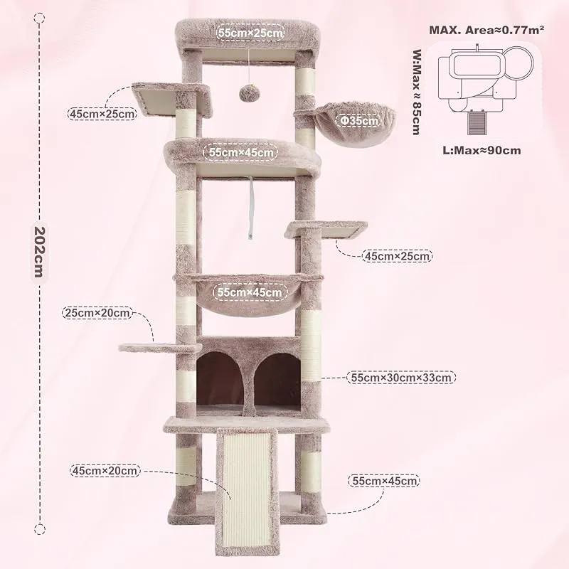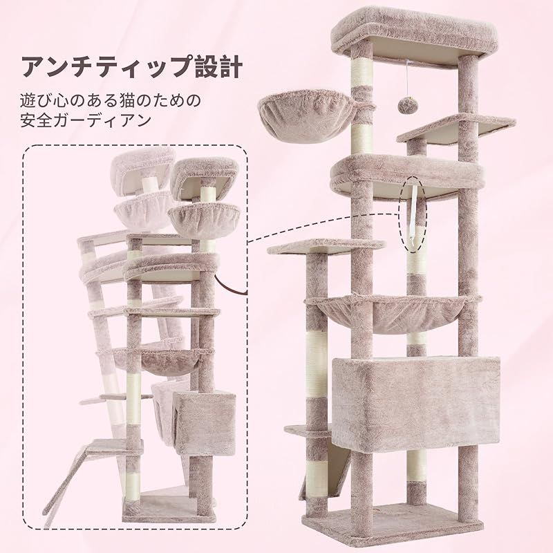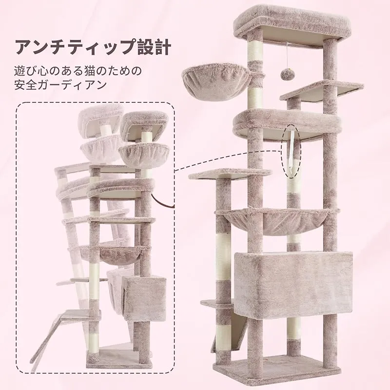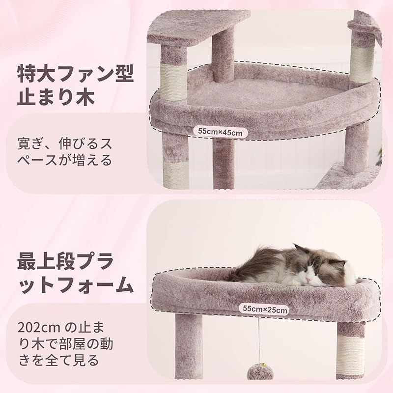 商品名:Heyblyキャットタワー 大型猫用 高さ202cm 複数猫飼育向け 高安定性 据え置き型キャットタワー 超大型扇形プラットフォーム 広々としたハンモック キャットハウス 登りやすい設計 多機能 運動不足解消 ローズブラウン HCT038MU