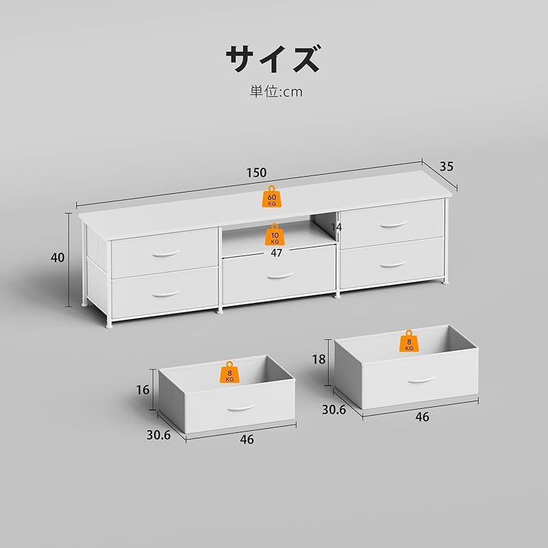 商品名:YeTom テレビ台 テレビボード 55型対応 収納付きテレビ台 おしゃれ ローボード 引き出し付き テレビラック オープンシェルフ 幅150×奥行35×高さ40cm 白い