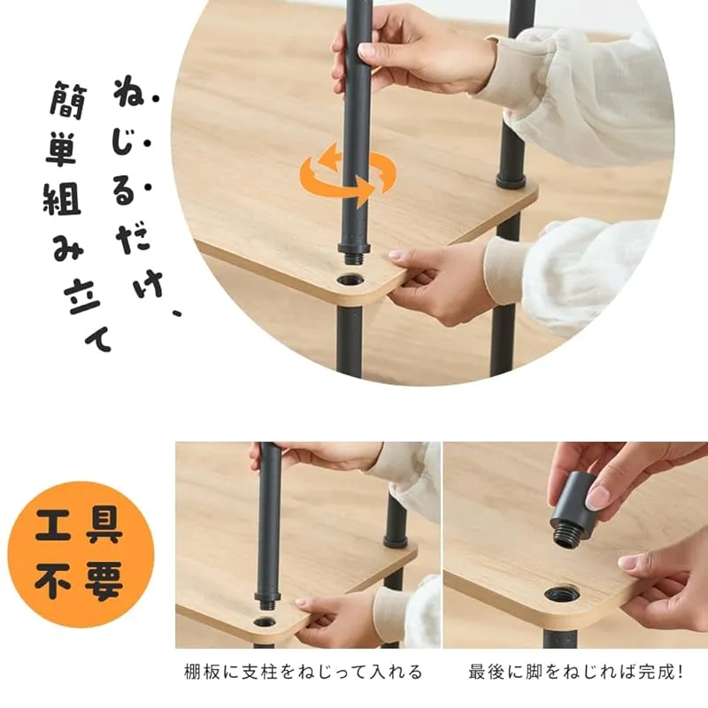 工具不要で、ポールをはめてねじるだけで簡単に組み立てることができます。