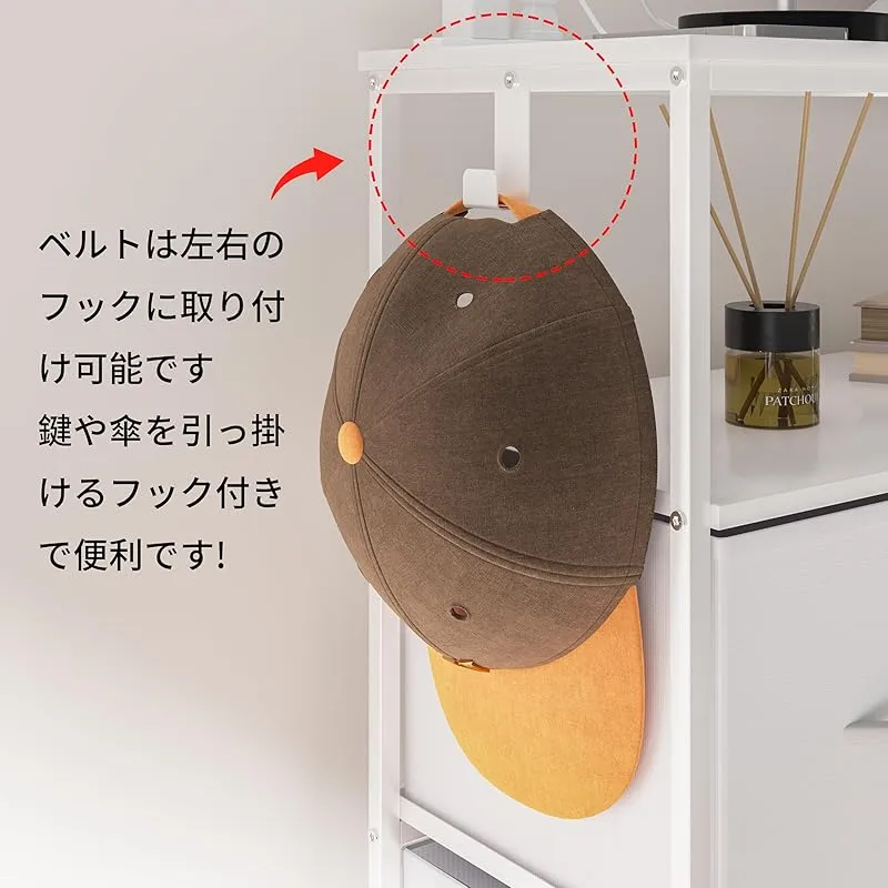 【使用シーン】寝室・クローゼット・リビングルームはもちろん、子供部屋、廊下、ベッドサイドなど、家中のあらゆる場所で活用できます。左右にフックが取り付けられるので、鍵や小物袋、バッグなどが掛けられて、日常の整理が格段に便利になります。