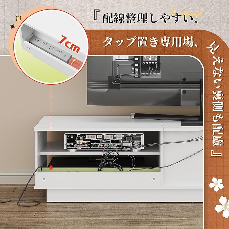 引出し二杯の隠し収納:二つの引出しでお気に入りの雑誌、DVD、ゲーム機などを楽に収納できます。外観はいつもきれいで、埃も防止します。また取っ手がないため、前面がフラットでスッキリに見えます。