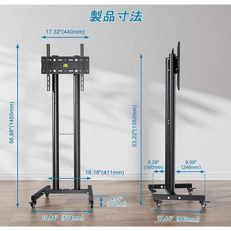 商品名:FORGING MOUNT テレビスタンド 移動式 壁寄せテレビスタンド 23-60インチ液晶テレビに対応 二重支柱設計 ハイタイプ キャスター付き 高さ調整可能 耐荷重40kg VESA400mmx400mmまで
