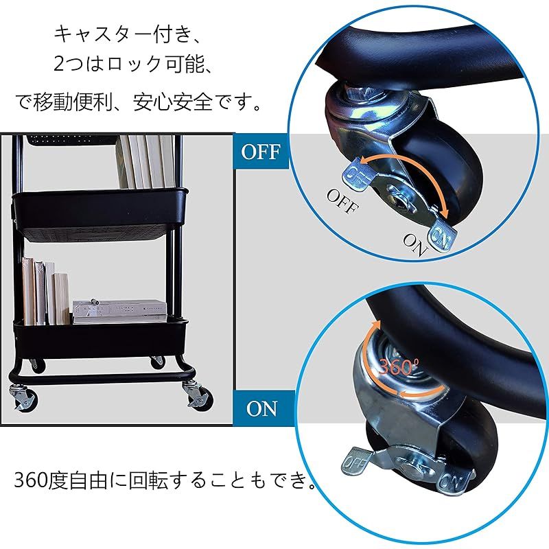 【キャスター&取っ手付き 移動便利】キャスター付きワゴン(2つはロック可能)、360度自由に回転可能、よりフレキシブルな方向を持っています。床を傷つけることなく手軽にそして静かに動かすこともできます。安心に使えます キャスターにロックを付いたので、安心安全です。
