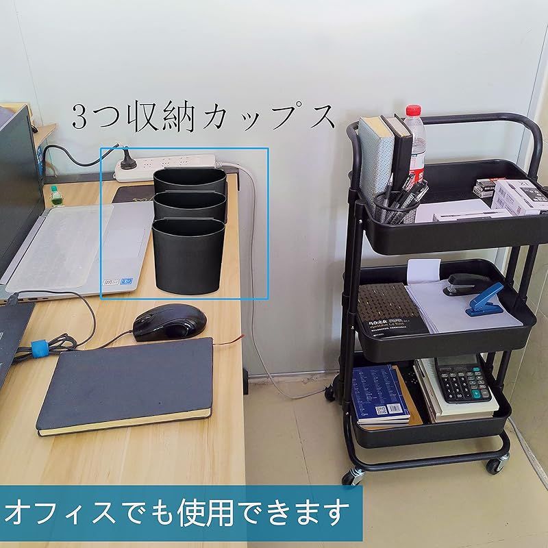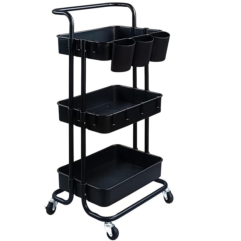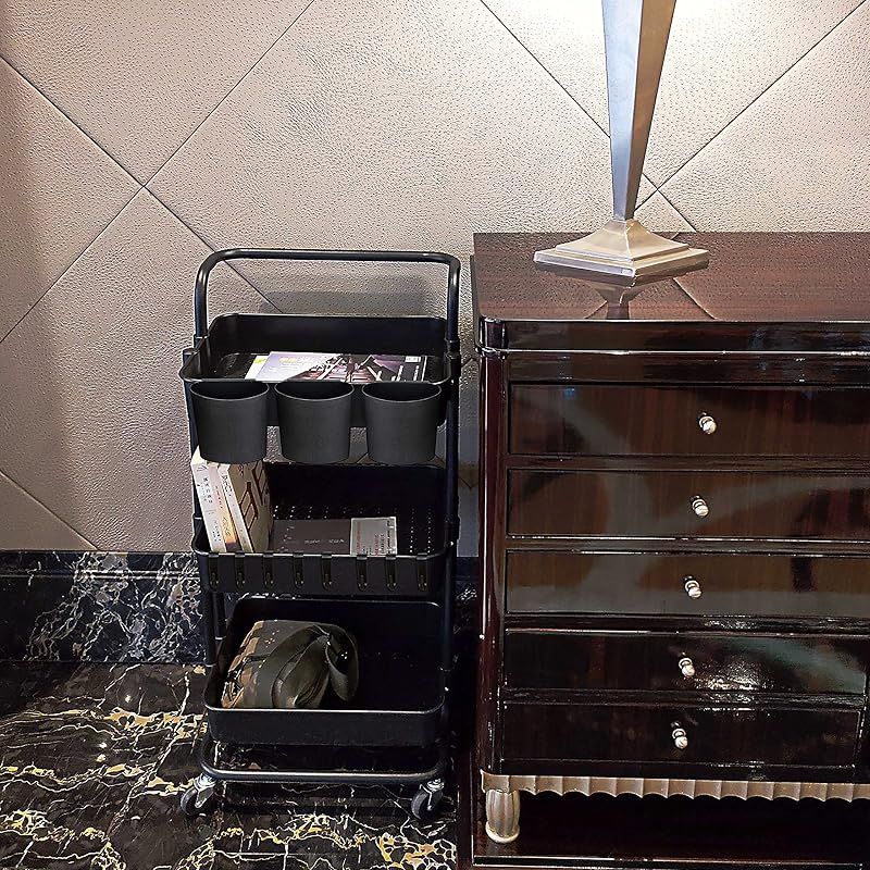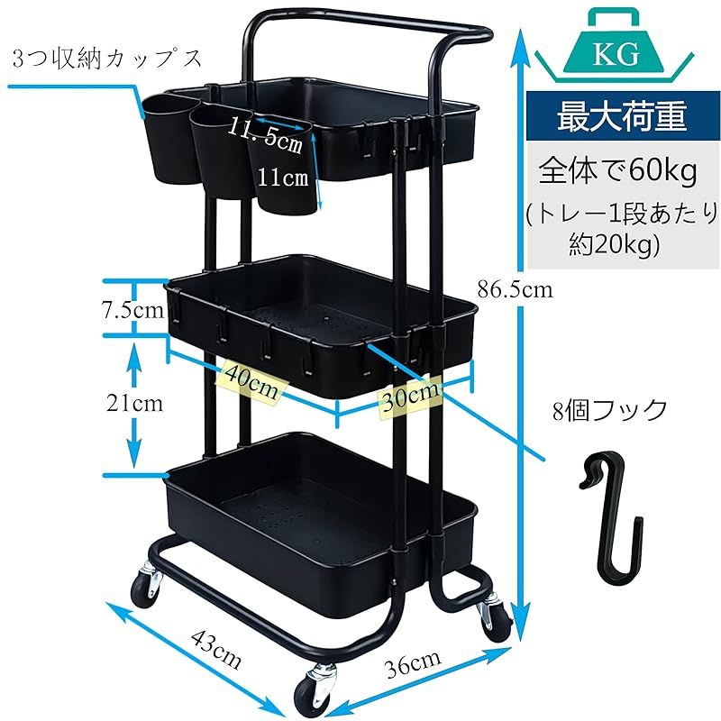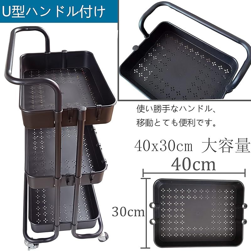 商品名:Ceeyali キッチン収納 バスケットトローリー キャスター付き 3段 マルチワゴン 収納ラック マルチワゴン キッチン収納 小物収納 耐荷重60kg (ブラック)
