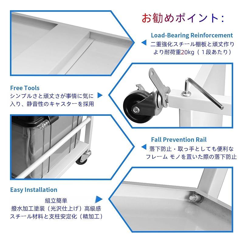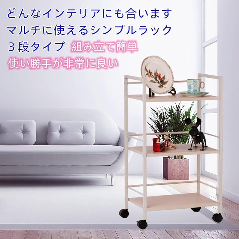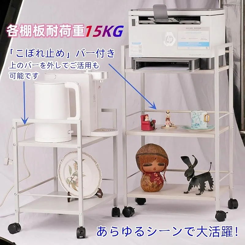商品名:Secchuu スチールラック 本体3.6kg 総耐荷重45kg 幅43×奥行30×高さ76cm 収納ワゴン プリンター台 PS5 横置き スタンド サイド収納 ストッパー付きキャスター 棚板1枚耐荷重15KG (ホワイト, 3段)