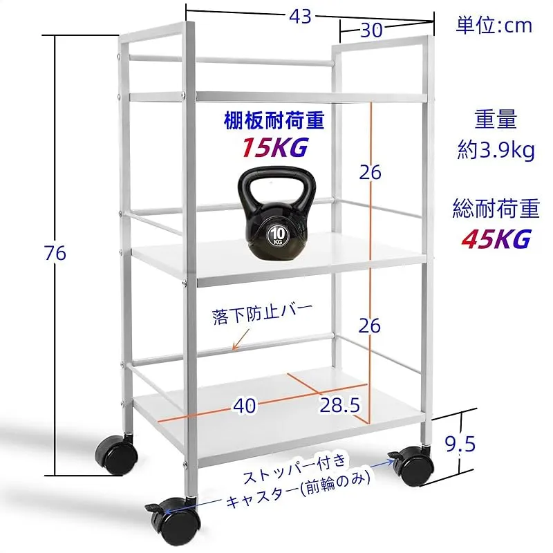 重量: 3.6kg(3段タイプ) 総耐荷重: 45KG ※色別: ホワイト