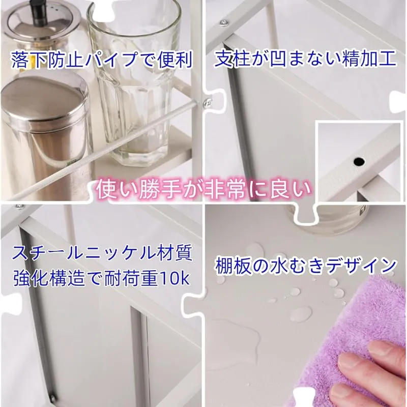 耐荷重: 15KG(一枚当たり) 棚板二重強化での設計