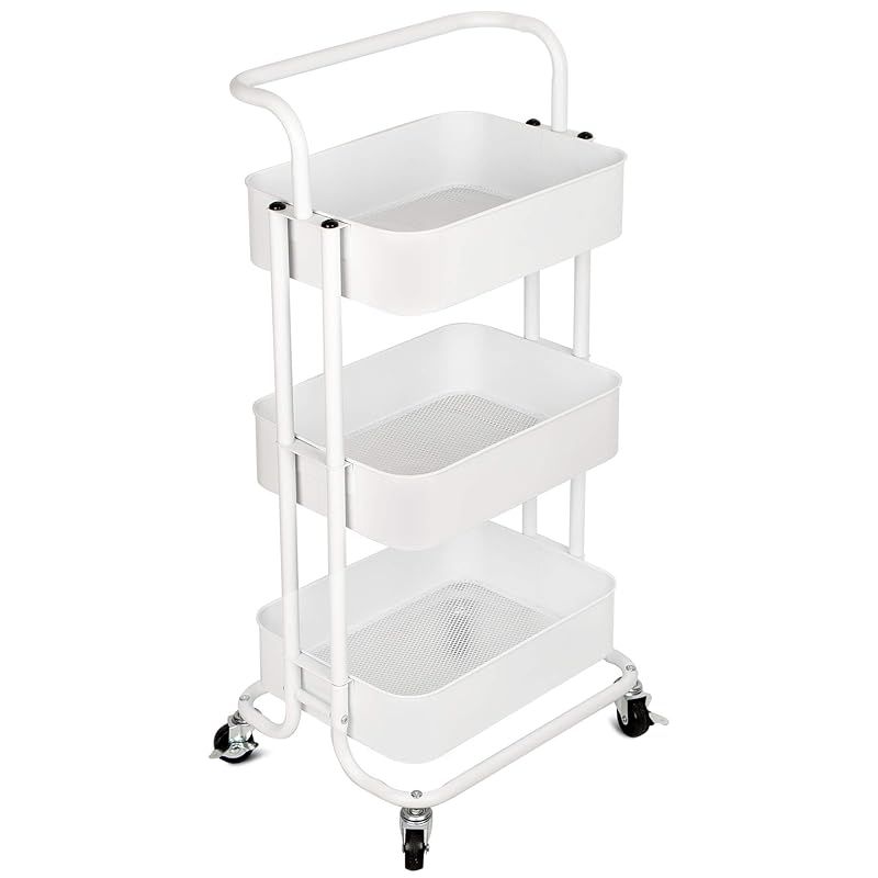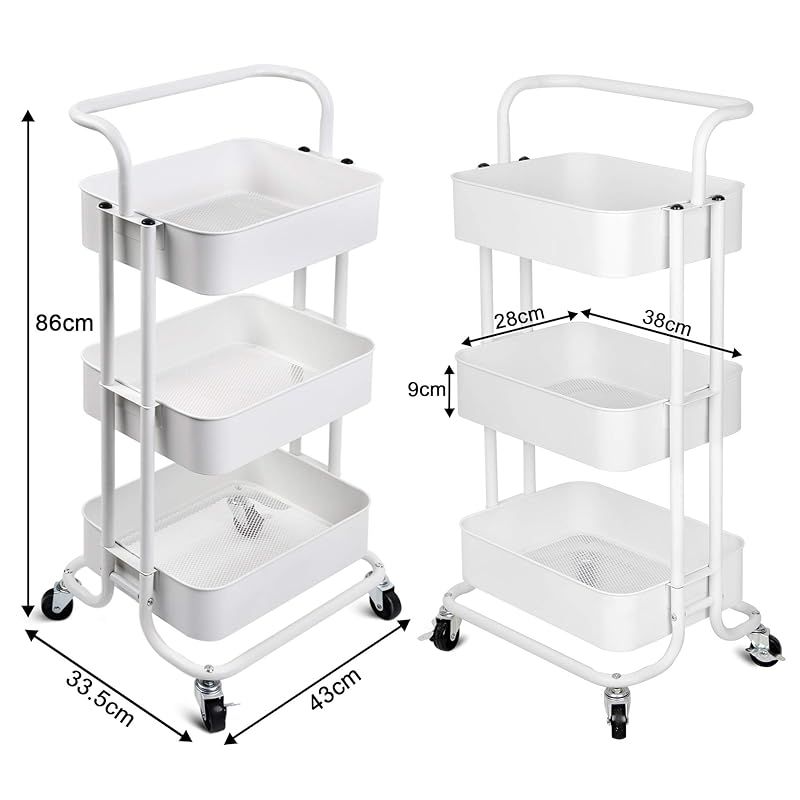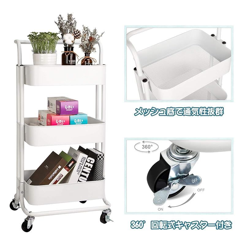 商品名:HANKEY キッチンワゴン ベビーワゴン 収納カート バスケットラック 整理棚 キャスター付き 3段 スチール製 頑丈 全体耐重45KG 幅43x奥行33.5x高さ86cm 合金鋼 ホワイト