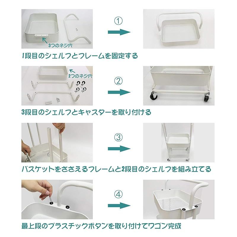 【組立簡単】取扱書に従って、一人でも簡単に組み立てることができます。2本パイプの構造で、ワゴンをしっかり支えてズレにくいです。
