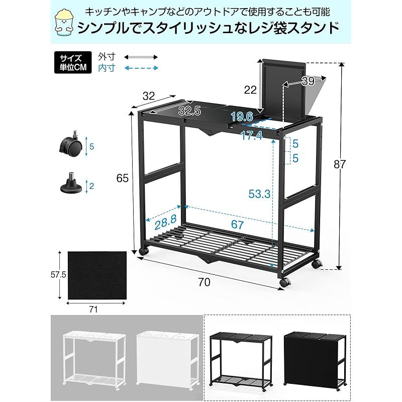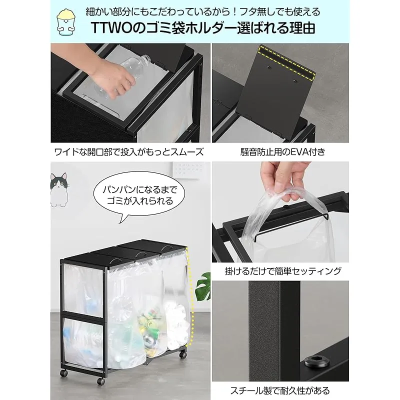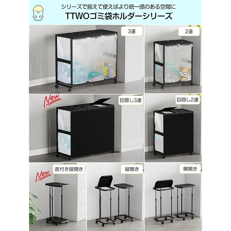 商品名:TTWO ゴミ袋ホルダー 3分別×45L 平袋・U型袋両対応 ダストワゴン ゴミ箱 マグネット式目隠しカバー ふた付き 高さ調整 10L~55Lゴミ袋対応 ゴミ箱ホルダー スタンド ポリ袋ラック レジ袋スタンド リサイクルスタンド ゴミ捨て簡単 エコ スリム