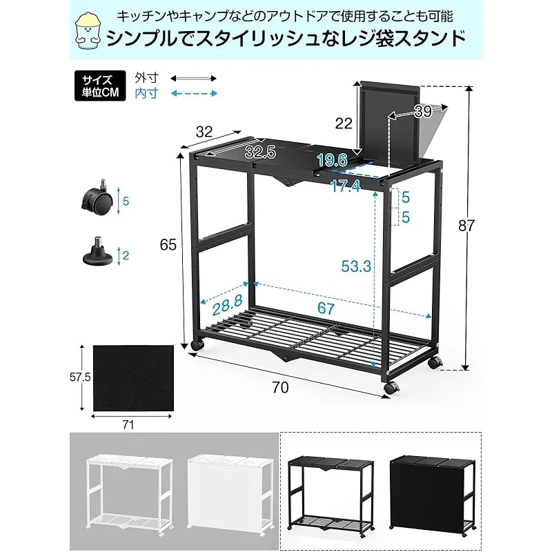 【平袋・U型袋両対応、使い勝手抜群】2026 年新発売の TTWO ゴミ袋ホルダーシリーズは、業務用平口型ゴミ袋と家庭用取っ手付きレジ袋のどちらも簡単セット可能、とても便利なワゴン型ゴミ箱です。ゴミがパンパンに溜まっても、側面からゴミ袋を取り出せるのでゴミ出しも容易になります。従来のゴミ箱との違いは省スペースなことと、側面や底面が汚れないこと。ゴミ袋ホルダーなら面積が小さいので、汚れにくく掃除も楽です。お手入れのしやすさが人気のポイントです。※真ん中はL型フック付けておりません。