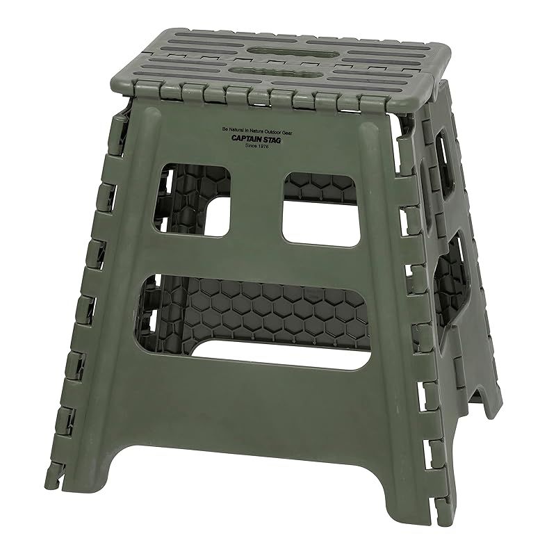 商品名:キャプテンスタッグ(CAPTAIN STAG) 踏み台 ステップ 椅子 折りたたみステップ フォールディングステップ 高さ40cm ハイタイプ オリーブ UW-1520