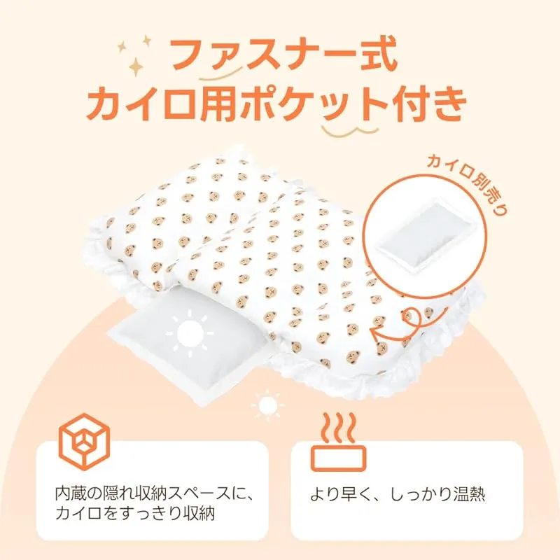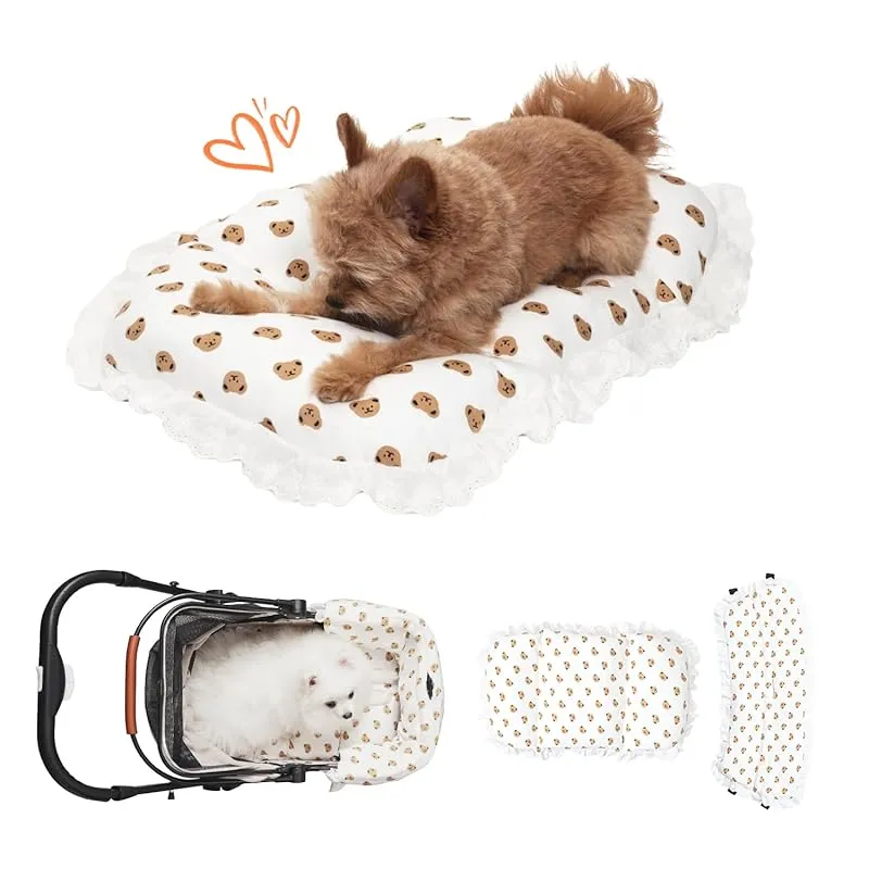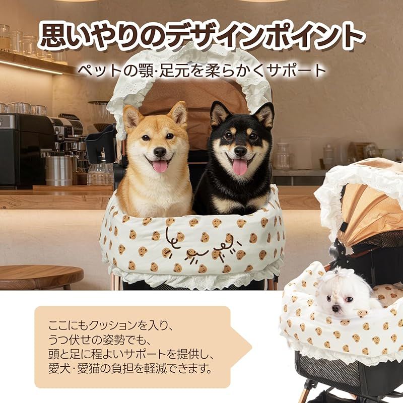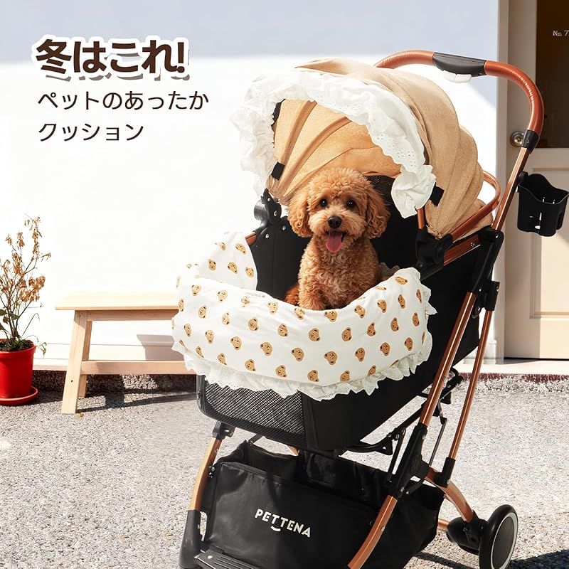 【しっかり保温する秋冬仕様】PETTENA ペットカート クッション あごのせクッション 犬体工学 関節サポート ふわふわ カイロOK カバー取り外し可能 IPX4防水インナーライナー 小中型犬まで対応(レースフリル付き)