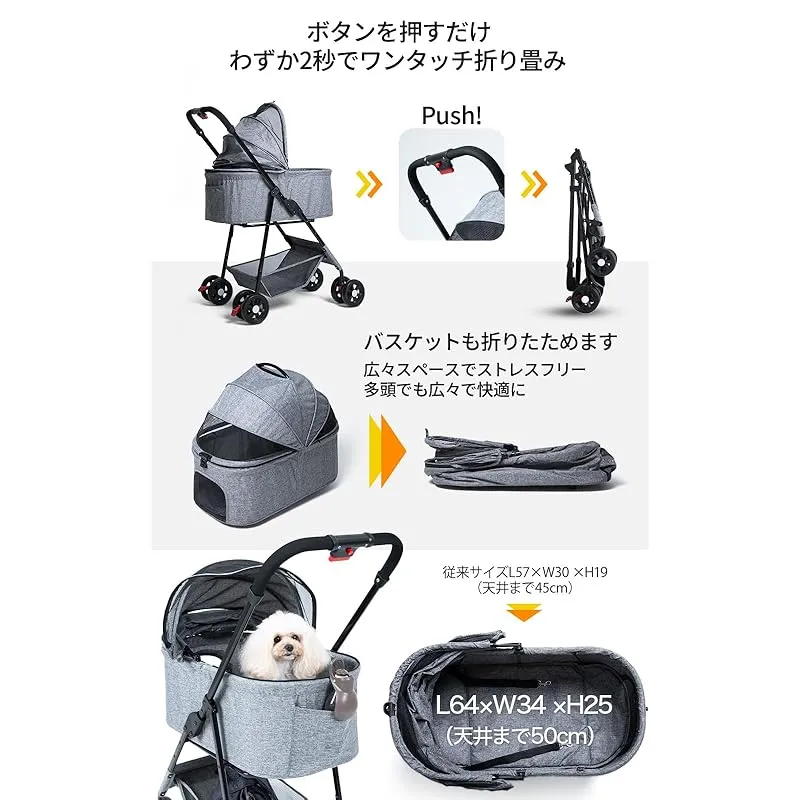 【旅行・アウトドアに最適な携帯性】 ワンタッチで折りたためるデザインなので、収納時に場所を取りません。伸縮ハンドル付きで旅行や帰省時にも大活躍し、飛び出し防止リードでペットの安全も守ります。お家の中や車内でも省スペースで保管可能です。折りたたみ式で自立するデザインを採用し、使わない時は狭いスペースに収納可能。大容量のバスケットと底部収納で、ペット用品からお出かけ時の小物までしっかり収納でき、軽量設計で片手でも持ち運びが簡単です。数秒で折り畳め、車のトランクや家の隅にもスムーズに収納できるので、旅行や外出時の必需品として重宝します。