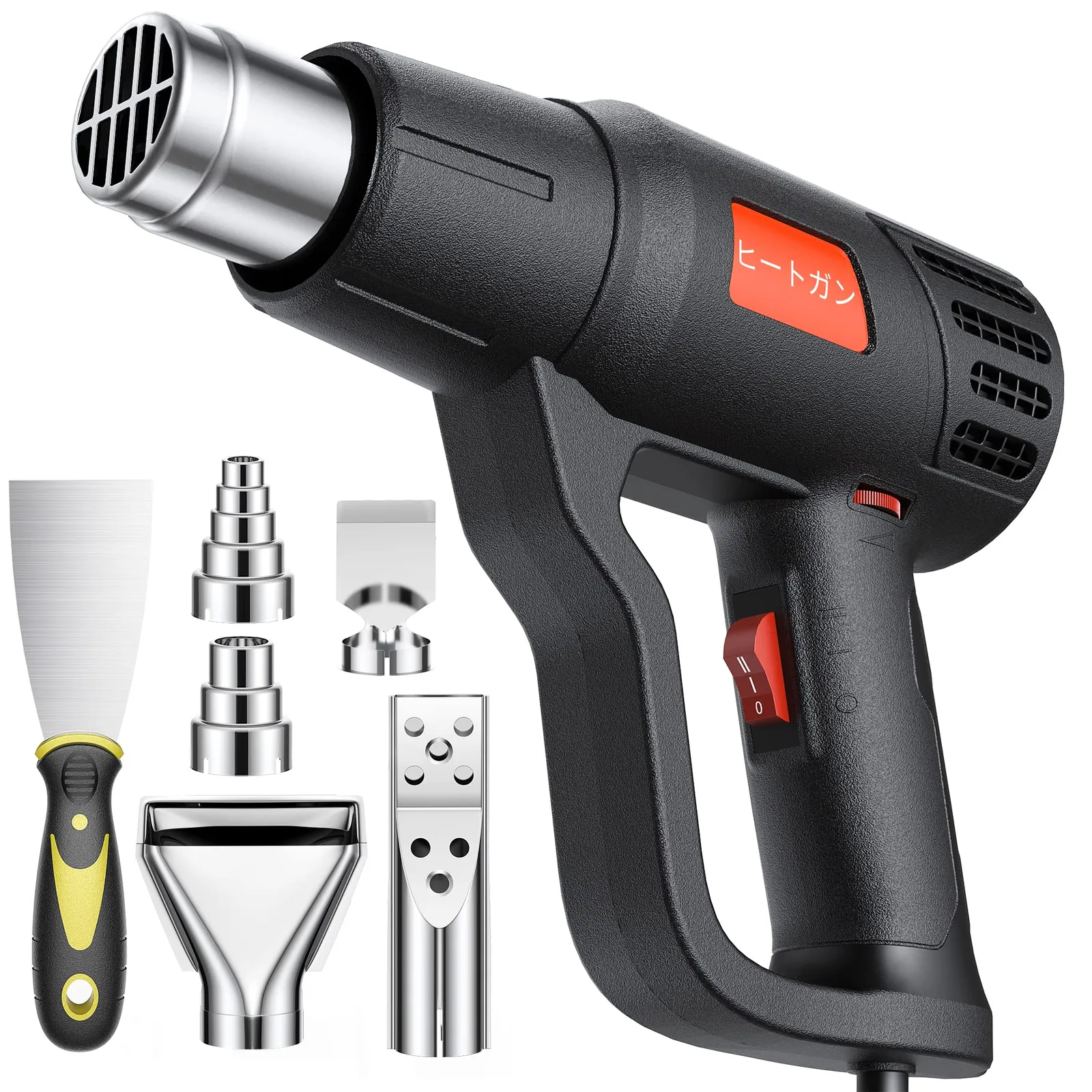 【6種アクセサリー付き】強力熱風で各種熱処理加工に使える多用途ホットガン。ノズル5種類が付いて、熱収縮チューブの収縮、接着剤処理、パテの剥離、樹脂管成型、プラスチック溶接、熱収縮フィルムの加熱、シール剥がし、基板の修理、溶接、乾燥、解凍など多用途に使えます。ノズル以外に、スクレーパーも付属しています。ホットガンを使って加工しやすくした物を、削ったり剥がしたりする作業にご使用できます。豊富なアクセサリーでとても使いやすいホットガン ヒートガンです。