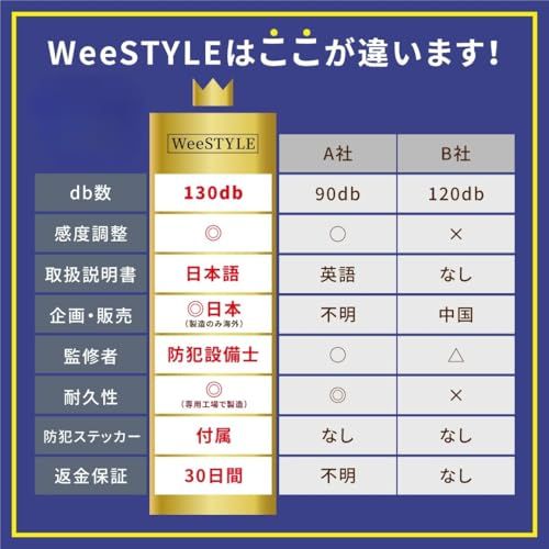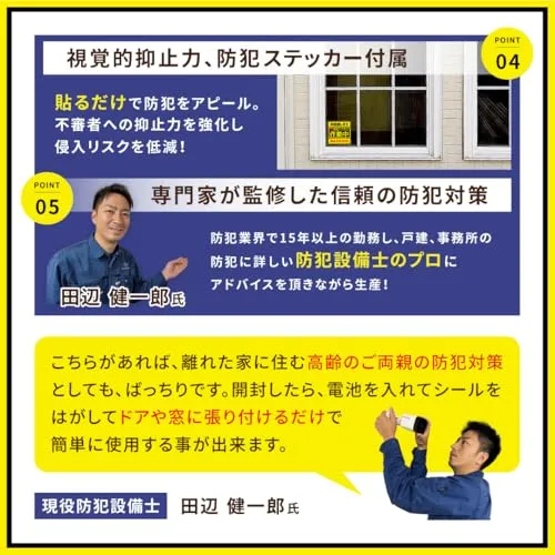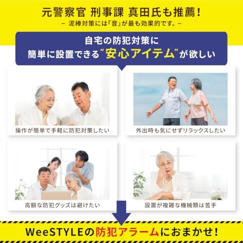 【家族の安心を守る、日本ブランドの防犯対策アラーム】 「WeeSTYLE」が自信をもってお届けする防犯対策アラームは、現役の防犯設備士が監修し、元警察官も推薦する高品質の防犯グッズです。日本ブランドならではのこだわりを詰め込んだこの商品は、自宅やオフィス、アパート、RV車など、さまざまなシーンで防犯対策として活躍します。安心して使用いただけるセキュリティ用品で、大切なご家族やお住まいの安全をしっかりと守ります。