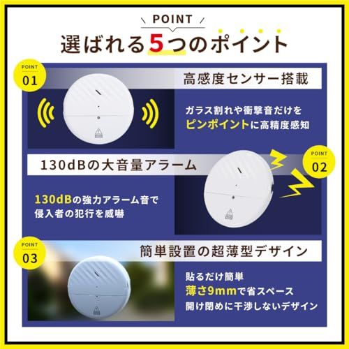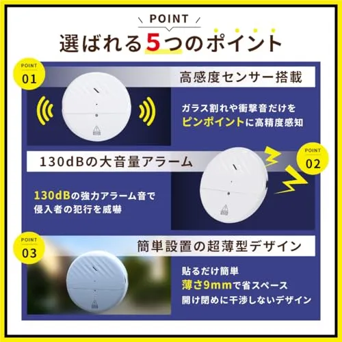 【大音量130dB!侵入者を撃退する強力なウィンドウアラーム】 この防犯アラームは、130dBの大音量でアラームが鳴り響き、空き巣や強盗を強力に抑止します。振動や衝撃を高精度で感知する振動センサーを搭載しており、窓ガラスやドアに貼り付けるだけで、防犯ブザーが侵入者に対して即座に警報を発します。また、誤作動が少ない設計のため、安心して日常生活に取り入れられる防犯グッズとしておすすめです。