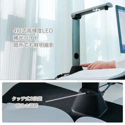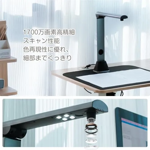 多機能A3/A4高精細スキャン対応:A3スキャナーは最大A3サイズ(420297mm)の大型資料からA4書類まで高精細にスキャン可能なドキュメントスキャナーです。1700万画素の高解像度スキャンで、契約書・設計図・領収書・レシートなど業務書類をくっきりとデジタル化。書画カメラ機能により教材や立体物をリアルタイム撮影し、Zoom会議での画面共有に対応します。オーバーヘッドスキャナーとしても使用可能で、オンライン授業やリモート打ち合わせを強力にサポートします。3段階調光LED補光灯を搭載し、暗所でも色あせのない鮮明なスキャンを実現します。家庭用スキャナーとしても事務所用スキャナーとしても幅広くご利用いただけます。
