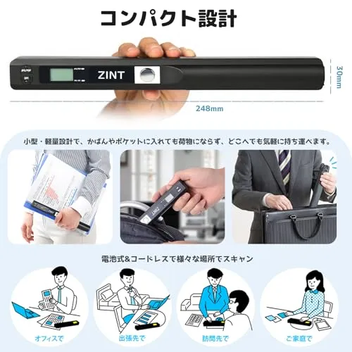 【持ち運びに便利な軽量設計】 本体の重さはわずか約150g、長さ25.5cmのコンパクトサイズ。ハンドバッグにもすっきり収まり、外出先や出張先でも簡単にスキャン可能。電源は単三電池2本(別売)で、電源コード不要、場所を選ばず使用できます。