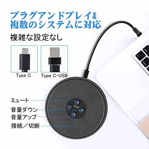 【高い交換性・プラグアンドプレイ】付属のUSB C-C&USB C-Aでの有線接続に対応しており、タブレットPC、パソコン、ノートパソコンなどを問わずに、簡単に接続できます。「プラグアンドプレイ」ですぐに使え、複雑な初期設定がありません。ボタンで音量調整や電話接続・切断等の操作ができます。EMEET M1A会議用マイクスピーカーは、Zoom、Skype、Microso