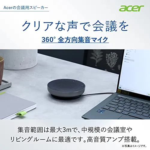 Acer カンファレンススピーカー ASK130 スピーカーフォン 会議用 マイク スピーカー 一体型 双方向通話 USBマイク USB-A接続 最大6人 360 全指向性集音マイク アンプ ノイズキャンセリング エコーキャンセラー コンパクト 190g 有線接続 オンライン会議 ウェブ会議 Web会議 ビデオ会議 在宅勤務 テレワーク オンライン授業 国内発送