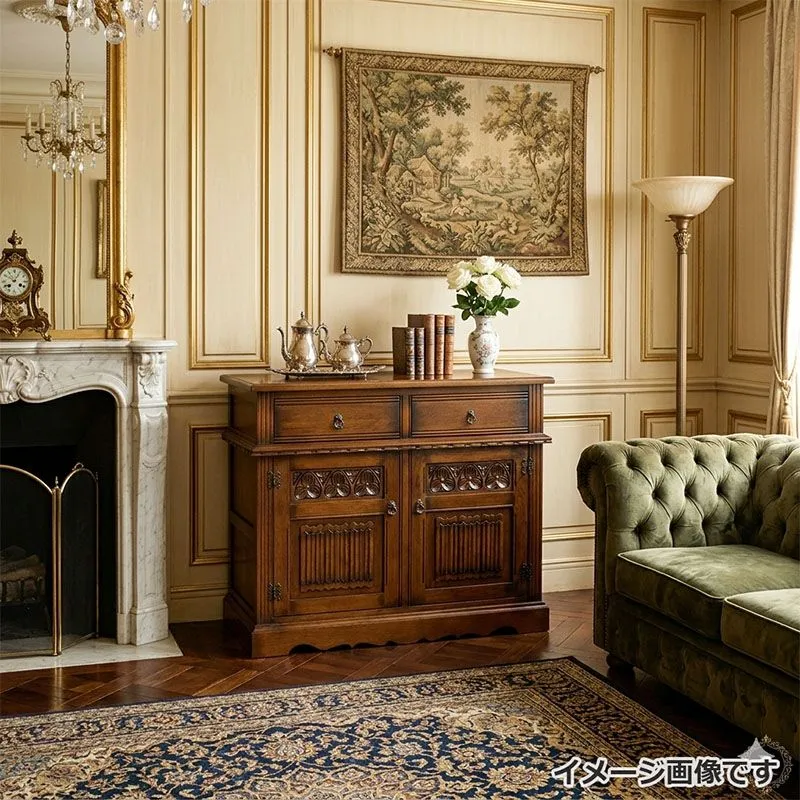 【コメント】イギリスアンティーク家具を忠実に再現した小サイドボードです。