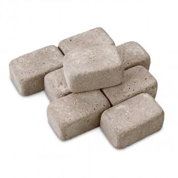 通常のレンガの4分の1程度のミニタイプの明るい茶色のレンガ32個と接着剤1本のセットです。レンガはベランダや箱庭ガーデン、小さな花壇などで扱いやすいサイズです。やや丸み帯びた優しいフォルムは、おもちゃのように手軽に並べられ、植物の鉢隠しや花台、インテリアのワンポイントにも利用できます。