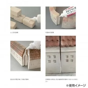 塗るだけでレンガや花壇材を簡単に接着できる、手軽な接着剤です。タレにくいペースト状でノズル付きのため、レンガの側面や目地にも塗りやすく作業が楽にできます。適度な骨材が含まれるのでレンガを積んだ際に目地からはみ出しにくくなっています。色はややグレーがかった落ち着いたホワイト。ベージュやホワイトのレンガや、花壇周りの明るい色の装飾用花壇材にもぴったりのカラーです。