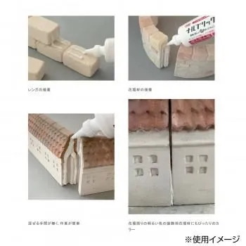 塗るだけでレンガや花壇材を簡単に接着できる、手軽な接着剤です。タレにくいペースト状でノズル付きのため、レンガの側面や目地にも塗りやすく作業が楽にできます。適度な骨材が含まれるのでレンガを積んだ際に目地からはみ出しにくくなっています。色はややグレーがかった落ち着いたホワイト。ベージュやホワイトのレンガや、花壇周りの明るい色の装飾用花壇材にもぴったりのカラーです。