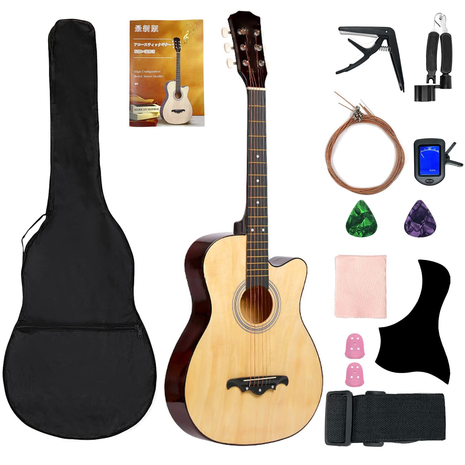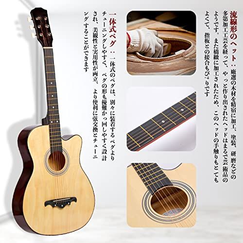 【色んな場合にぴったり】アコースティックギターのボディーは厳選したバスウードで作られています。張られる高品質なスチール弦も良い音ができることを支える。旅行、録音、パーティー、家庭娯楽など、いろんな場面に適しています。アコースティックギターは、様々な音楽ジャンルで使用されています。