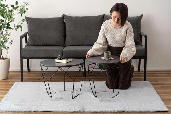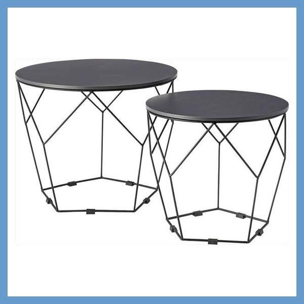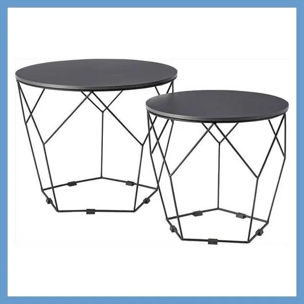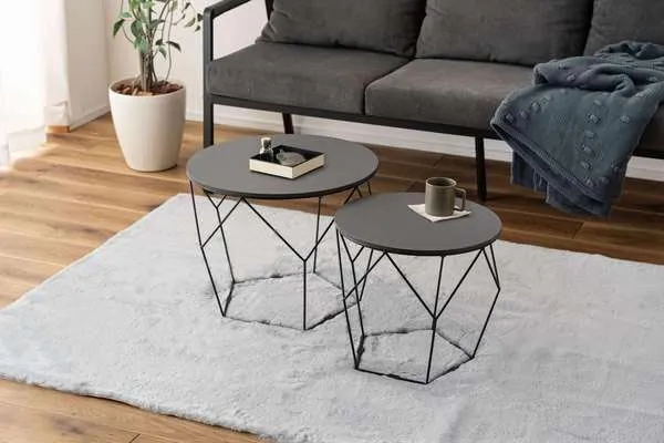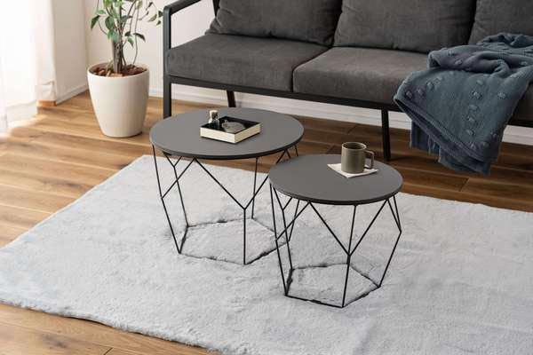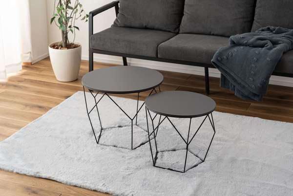 個性的 定番 おしゃれ こだわり デザイン お洒落 リーズナブル 安い お買い得 お値打ち シンプル カジュアル 木製 ウッド 金属 アイアン 鋼鉄 リビングテーブル カフェテーブル ソファテーブル センターテーブル ローテーブル スタイリッシュ 高級感 かっこいい かわいい 格好良い ラウンドテーブル ネストテーブル サイドテーブル 組み合わせ 段違いテーブル 円形 サークル トレイ 板 台 2個セット カスタム カスタマイズ ペンタゴン 五角形フレーム 骨組み インダストリアル ダイヤモンド 幾何学 グレイ