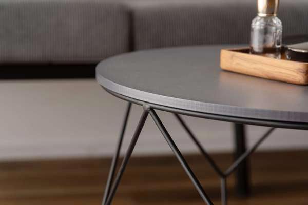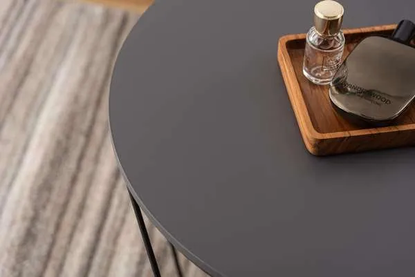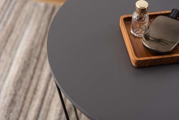 マットな質感の天板と、すっきりとしたフレームを組み合わせたラウンドテーブルシリーズ。