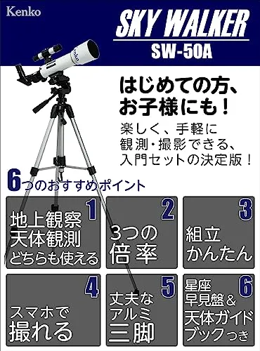 天体観測や地上観察を楽しめるKenkoのコンパクト望遠鏡 SW-50A